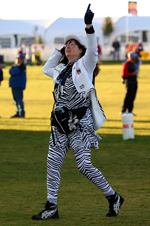 Und für die Sicherheit verantwortlich sind die Balloon-Meister (ja, so heißen die auf Englisch), auch Zebras genannt. Hier warnt ein Zebra gerade einen Pilot vor einem überfliegenden Ballon; nach oben ist die Sicht aus einem Heißluftballon nicht sehr gut.